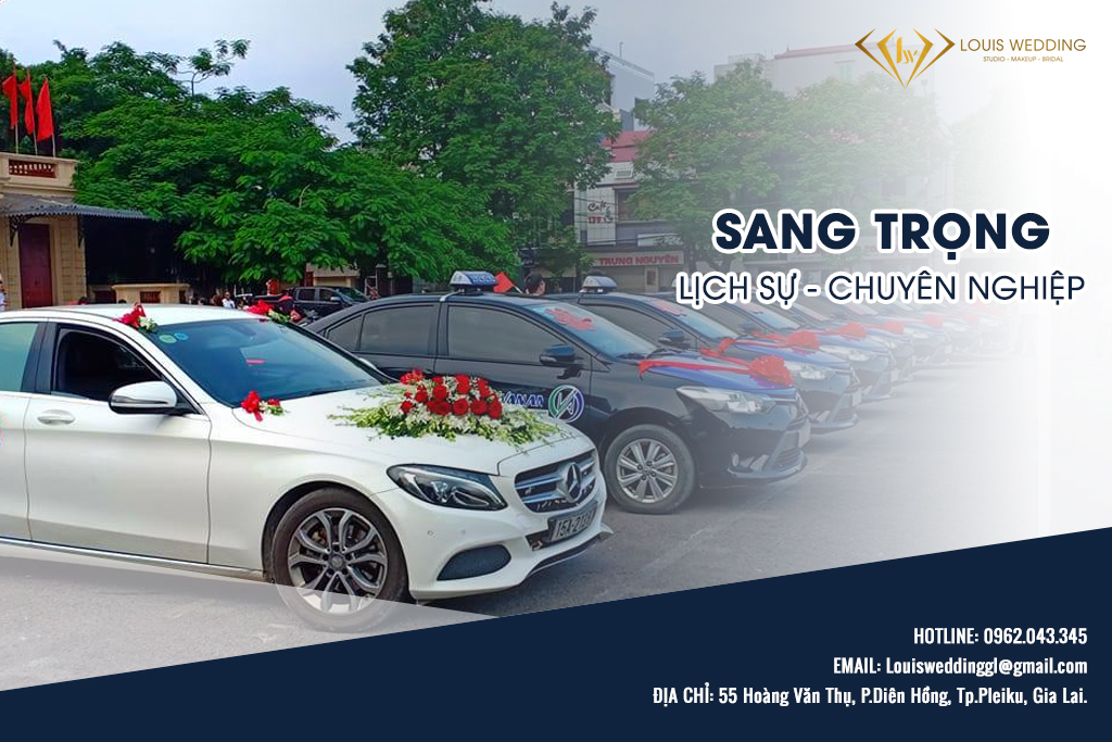 Khi mùa cưới đến gần, nhu cầu thuê xe cưới tăng đột biến nên việc tìm địa chỉ thuê xe cưới uy tín để đảm bảo đúng giờ, tránh ảnh hưởng đến lộ trình đón cô dâu là rất quan trọng. Nếu bạn đang có nhu cầu tìm dịch vụ cho thuê xe cưới tại Gia Lai uy tín, an toàn, chất lượng, quan trọng là giá thành vô cùng phải chăng, hãy liên hệ ngay với Louis Wedding Studio.
