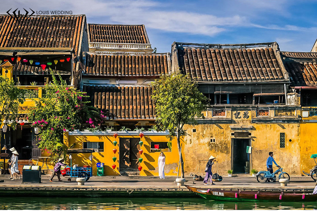 Hội An quyến rũ nhờ vẻ đẹp cổ điển, mộc mạc. Lựa chọn nơi đây chụp ảnh cưới hai bạn có thể chụp đêm cùng hoa đăng hay chụp cưới phong cách cổ điển với áo dài và vest như những năm 20.