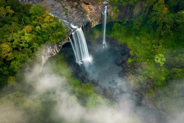 Thác Hang Én hiện lên như dải lụa trắng giữa núi rừng hoang sơ khi nhìn từ trên cao. Ngọn thác là điểm đến dành cho những người ưa khám phá thiên nhiên, nằm trong khu Bảo tồn thiên nhiên Kon Chư Răng, huyện K’bang. Thác Hang Én cao 50 m với dòng chảy thẳng đứng. Nếu may mắn, du khách có thể bắt gặp sương mù và cầu vồng tại đây. Dưới chân thác là những khối đá xếp chồng lên nhau tạo thành những bậc thang giữa dòng nước xanh bạc.